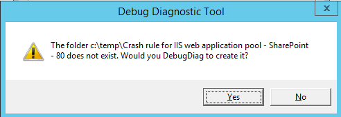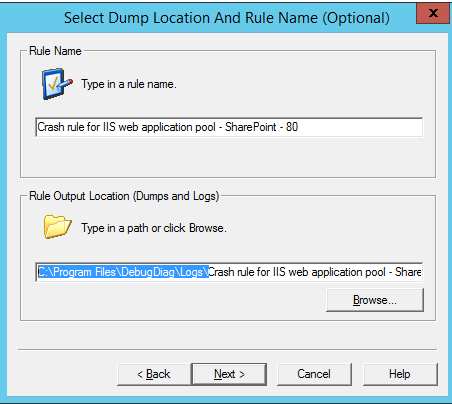 24. By default logs and dumps are saved at C:\Program Files\DebugDiag\Logs\. It is ok to keep the default, but some environments cannot hold big files on disk C:. To change the folder replace C:\Program Files\DebugDiag\Logs\ by your new disk folder (but please let the crash rule subfolder as it is). This is the moment to do so:
