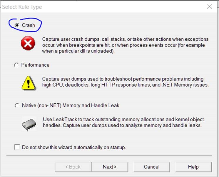 4. Choose Crash on Rule Type and click Next