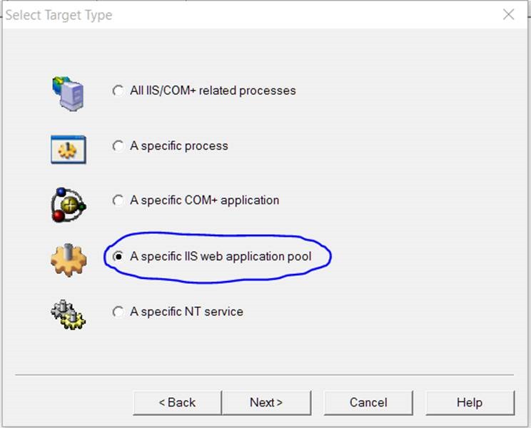 4. Then choose A specific IIS web application pool and click Next