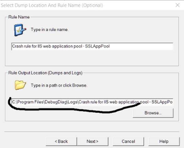 11. By default, the dump will be written in C:\Program Files\DebugDiag\… If you want to save in a different place, change the appropriate filed (it will create the folder if it does not exist: