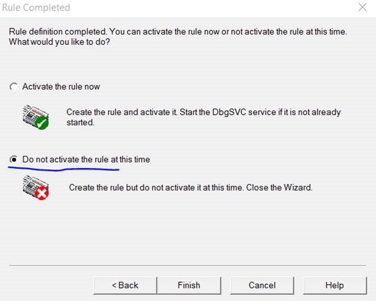 12. Choose not to activate the rule at this time