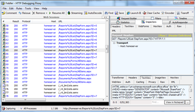 After logging in, the application will enumerate all items and hit them. In this fiddler except you can see how it silently works: