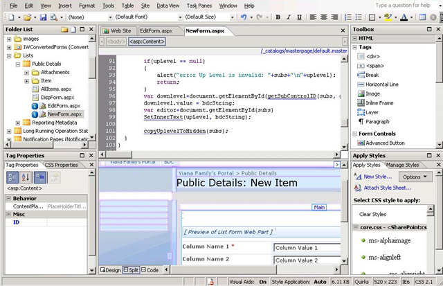 You have to open the site in Sharepoint Designer, navigate to the list you want (in my example I used a list called “Public Details”), look for a spot in the html code and copy the Javascript code below to both EditForm.aspx and NewForm.aspx.