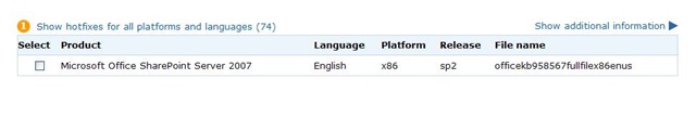 Notice that you will be offered only the English version initially. Click on “Show hotfixes for all platforms and languages” and it will show for all languages and architectures (x86 and x64).